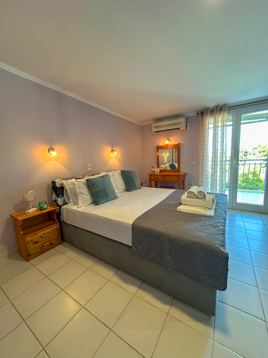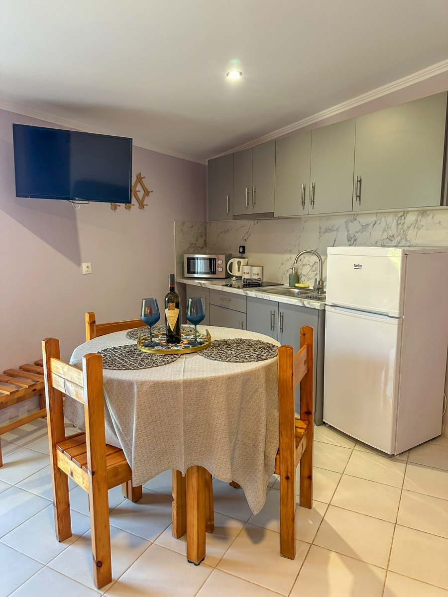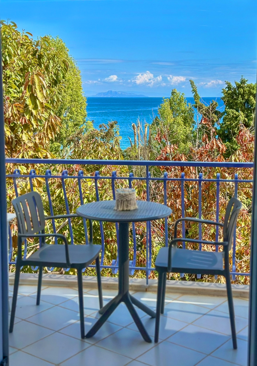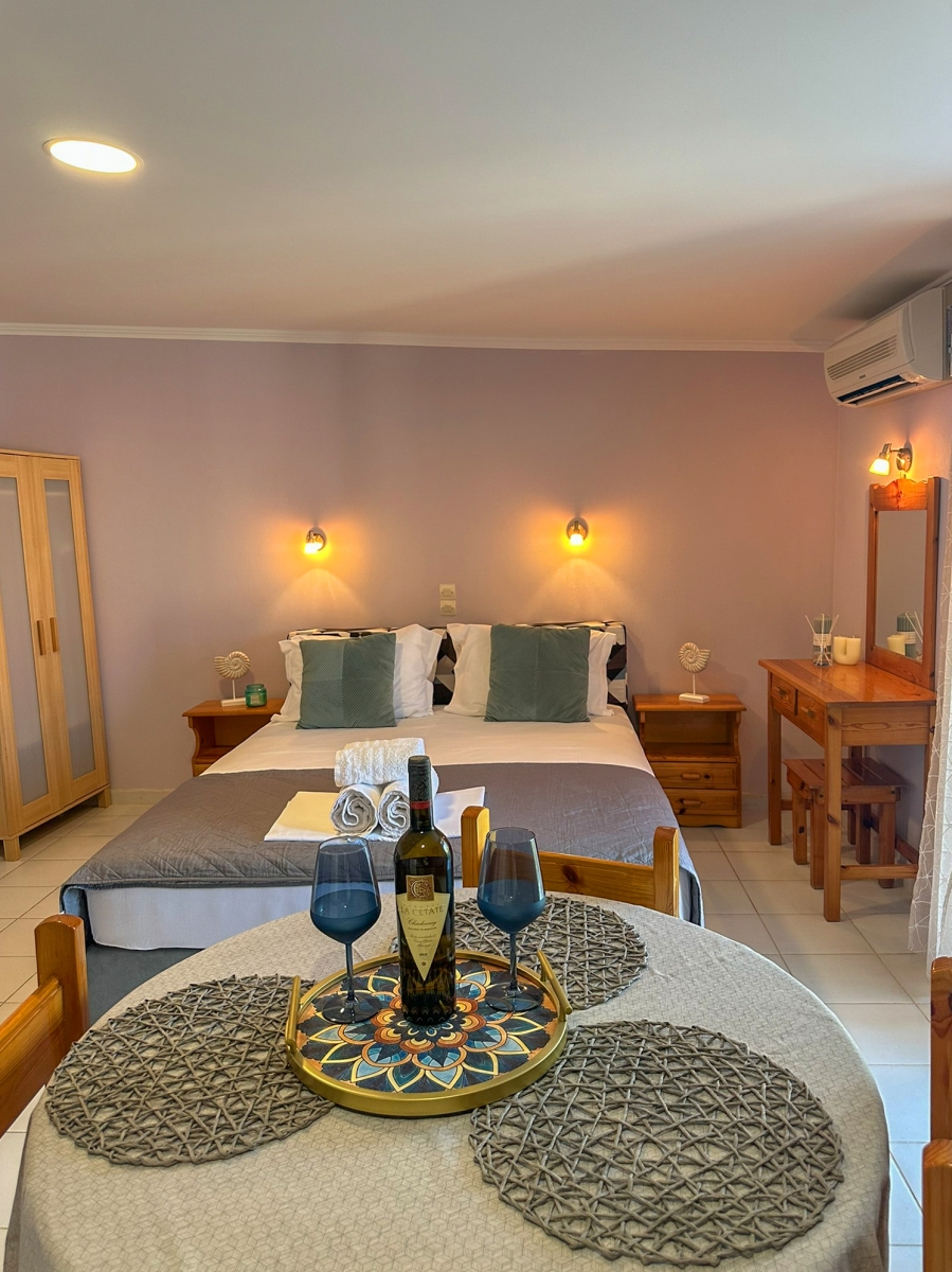 Όμορφα διακοσμημένα στούντιο με επιπλωμένο μπαλκόνι με θέα στη θάλασσα και τα γύρω βουνά.