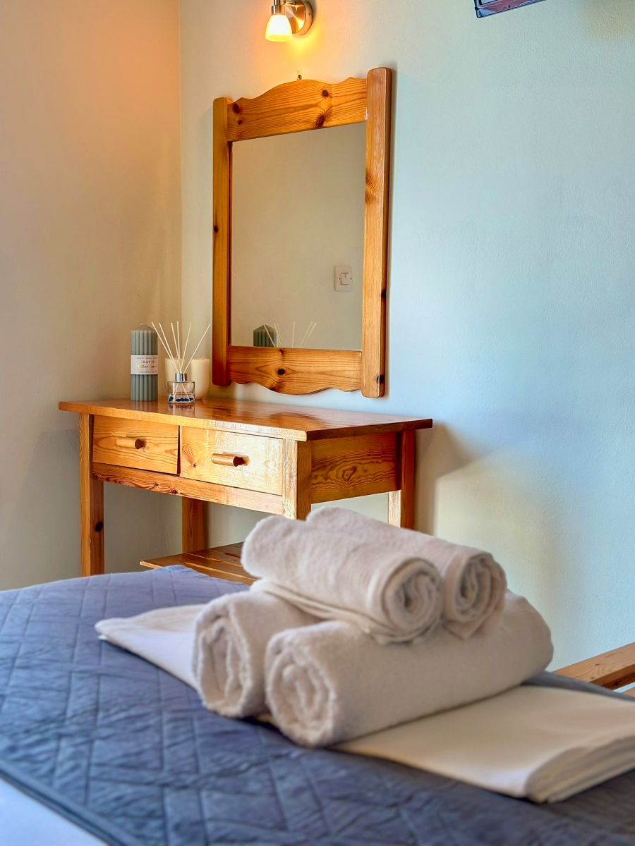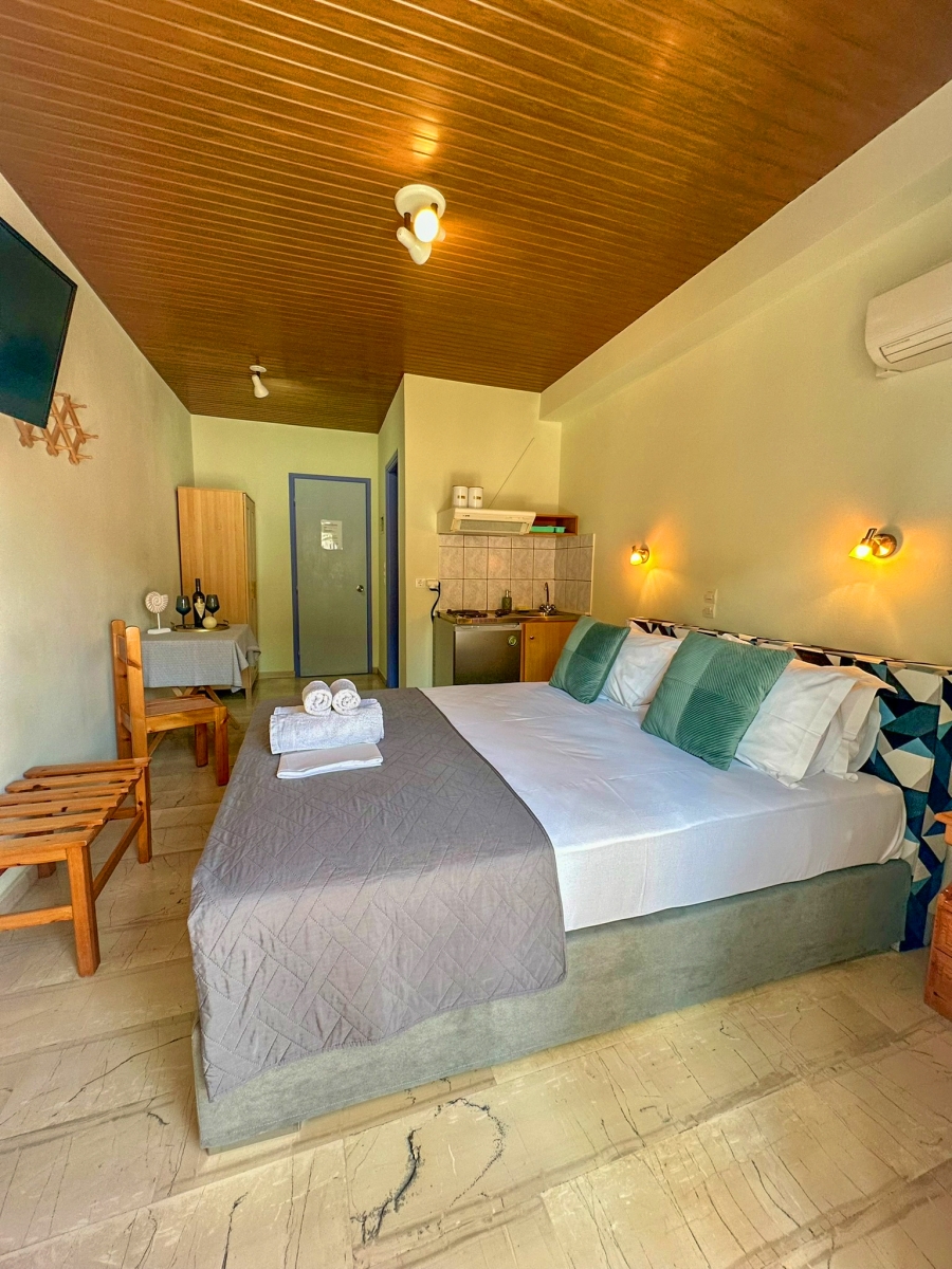 Όμορφα διακοσμημένα στούντιο με επιπλωμένο μπαλκόνι με θέα στη θάλασσα και τα γύρω βουνά.